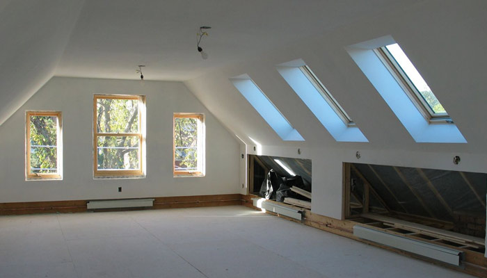 An attic with the potential for additional living space, room for a home office, a bath and storage.
